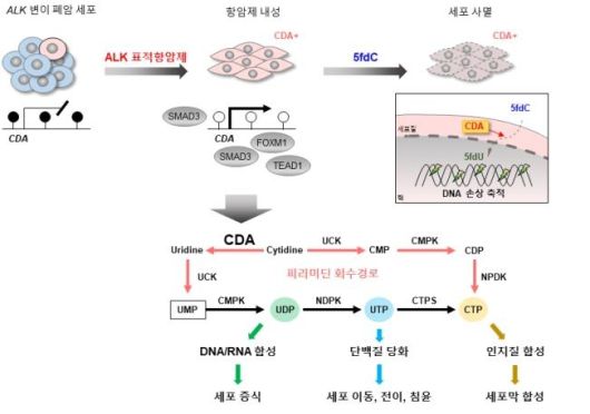 연구팀은 표적항암제를 투여할 때 암 세포 증식·이동성을 높여 전이를 유발하는 ‘시티딘 탈아미노효소’(CDA)가 암세포 내에서 활성화해 항암제를 회피하고 증식하면서 내성이 생긴다는 것이다.