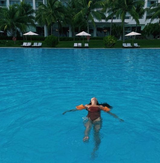 태그를 통해 베트남 여행 중임을 알린 전다빈은 바닷가에서 시간을 보내고 있는 모습. 그는 수영장에서 물 위에 둥둥 떠 있거나, 모래사장에서 수영복 자태를 뽐내고 있다.