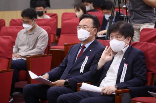 유상범(오른쪽에서 두 번째) 국민의힘 의원이 지난 2일 당헌·당규 개정안 의결을 위해 국회 의원회관에서 열린 제6차 상임전국위원회에 참석해 있다. (사진=국회사진기자단) |