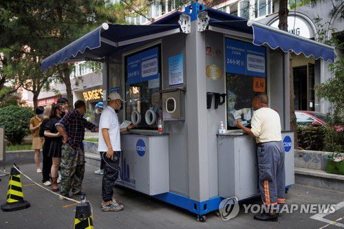 (로이터=연합뉴스) 지난 13일 중국 베이징의 코로나19 PCR 검사소에 사람들이 줄을 선 모습. 2022.9.19. |