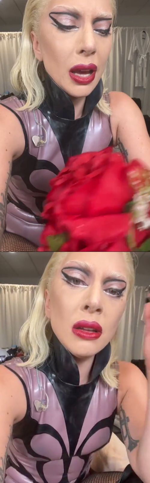 레이디 가가는 19일(한국시간) 자신의 SNS에 눈물로 짙은 화장이 얼룩진 얼굴을 담은 사진을 게재했다. 눈물자국이 여실히 드러나며 품 안에는 붉은 장미꽃을 들고 있다.