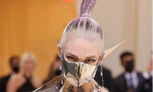 엘프와 같은 뾰족귀 장식을 하고 지난해 뉴욕 멧 갈라 쇼에 참석한 그라임스의 모습. 그라임스 사회관계망서비스(SNS) 캡처 |