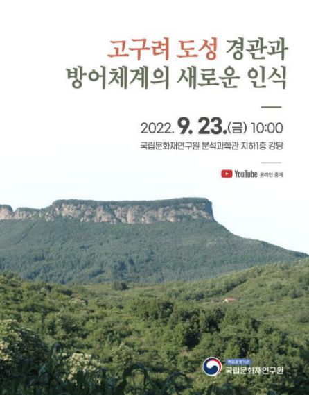[아시아경제 서믿음 기자] 문화재청 국립문화재연구원은 오는 23일 오전 10시 국립문화재연구원 분석과학관 지하 1층 강당에서 ‘고구려 도성 경관과 방어체계의 새로운 인식’을 주제로 국제학술세미나를 개최한다.