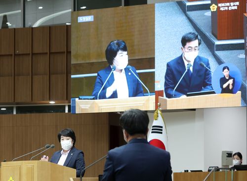 산하기관장 인사청문회 대상을 8곳에서 전체로 확대할 의향이 있느냐는 물음에 김 지사가 "도의회와 확대 여부를 협의하겠다"고 하자 지 의원은 "(할 것인지 말 것인지) 답변을 명확히 해달라"고 다그치며 충돌하기도 했다.