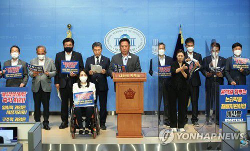 이들 의원은 이날 국회 기자회견에서 "지난 15일 국회 농림축산식품해양수산위원회 법안심사소위에서 처리했던 양곡관리법이 지난 20일 전체회의에서 여당의 반대에 막혀 상정되지 못하고 있다"며 "농업인의 생사가 걸린 쌀값 정상화를 위한 국회 입법 처리가 늦어지고 있다"며 이같이 말했다.