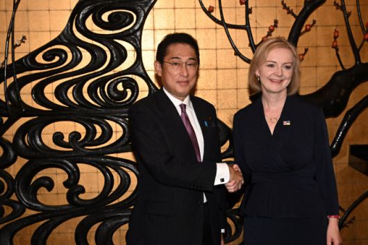 20일(현지시간) 미국 뉴욕에서 열린 유엔 총회에서 일본 기시다 총리와 리즈 트러스 영국 총리가 만났다. |