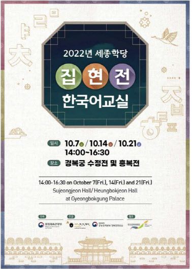 ‘세종학당 집현전 한국어교실’은 경복궁관리소와 세종학당재단이 2019년부터 국내 체류 중인 외국인에게 한국어와 한국문화 체험 기회를 제공하기 위해 매년 운영 중이다. 지난해에는 코로나19로 인해 비대면으로 개최됐고, 올해는 대면으로 진행한다.