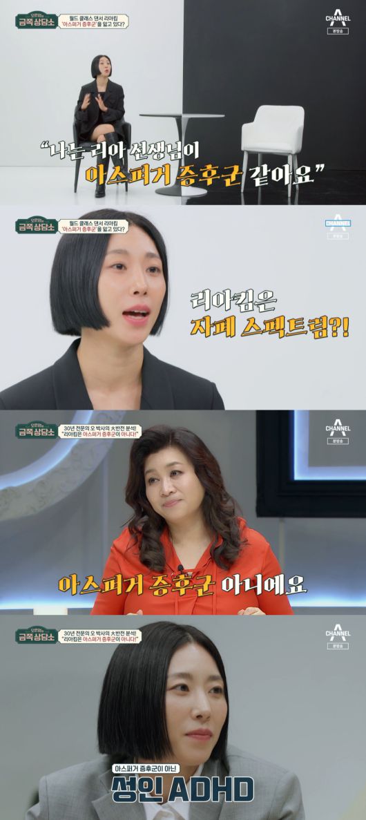 리아킴의 이야기를 듣던 오은영 박사는 “아스퍼거 증후군이 아니다”라고 확신했다. 그러면서 “리아 씨는 성인 ADHD이다”라고 진단했다.