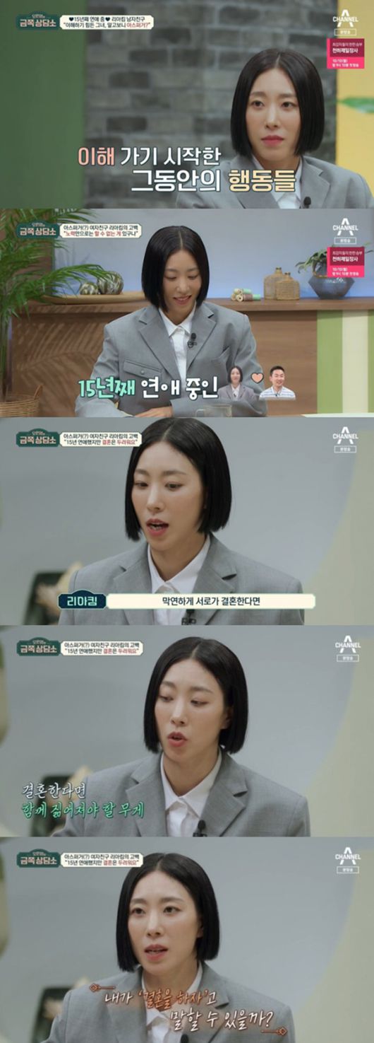 [스포츠투데이 임시령 기자] '오은영의 금쪽상담소' 리아킴이 결혼에 대한 고민을 토로했다.