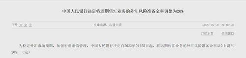 인민은행은 외환시장 기대치를 안정시키고 거시 건전성 관리를 강화하기 위해 이같이 결정했다고 밝혔다.