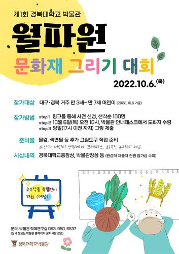 (대구=연합뉴스) 경북대 박물관은 다음 달 6일 지역 어린이들을 대상으로 제1회 월파원 문화재 그리기 대회를 연다.