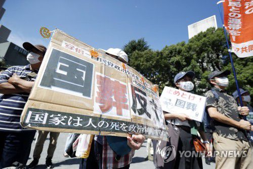 이날 정오 히비야공원에서도 일본 시민단체가 주도한 국장 반대 집회가 열렸다. 주최 측에 따르면 이 집회에는 약 2천500명이 참가했다.