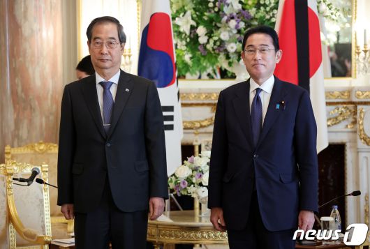 (도쿄=뉴스1) 박지혜 기자 = 한덕수 국무총리가 28일 일본 도쿄 아카사카 영빈관에서 기시다 총리와 면담에 앞서 기념 촬영을 하고 있다. 2022.9.28/뉴스1pjh2580@news1.krCopyright ⓒ 뉴스1. All rights reserved. 무단 전재 및 재배포 금지.