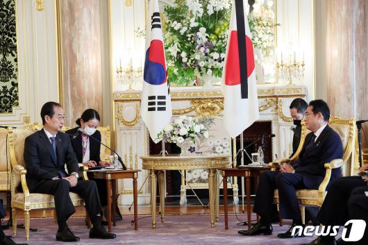 (도쿄=뉴스1) 박지혜 기자 = 한덕수 국무총리가 28일 일본 도쿄 아카사카 영빈관에서 기시다 총리를 만나 대화하고 있다. 2022.9.28/뉴스1pjh2580@news1.krCopyright ⓒ 뉴스1. All rights reserved. 무단 전재 및 재배포 금지.