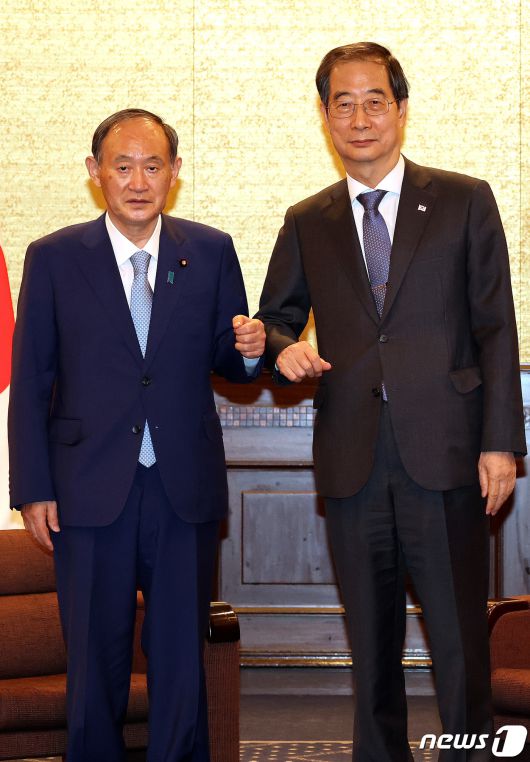 (도쿄=뉴스1) 박지혜 기자 = 한덕수 국무총리가 28일 일본 도쿄 제국호텔에서 스가 전 일본 총리와 면담에 앞서 팔꿈치 인사를 하고 있다. 2022.9.28/뉴스1pjh2580@news1.krCopyright ⓒ 뉴스1. All rights reserved. 무단 전재 및 재배포 금지.
