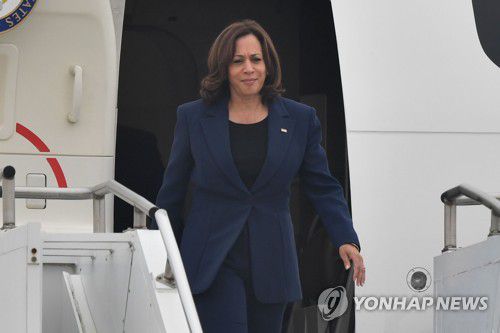 전용기에서 내리는 해리스 미국 부통령 |