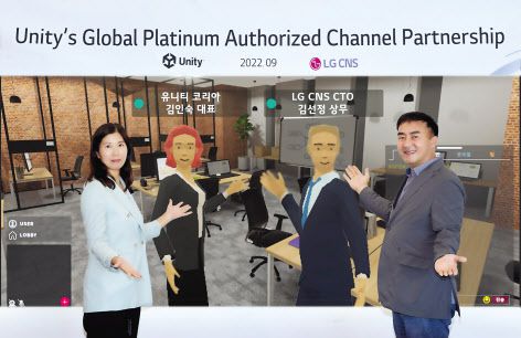 LG CNS는 글로벌 톱 3D플랫폼 기업인 ‘유니티’와 메타버스 사업 협력을 위해 플래티넘 파트너십을 체결했다고 29일 밝혔다. 플래티넘은 디지털전환(DX) 기술 전문가를 다수 보유하고 자체적으로 DX 사업을 영위할 수 있는 파트너사에만 부여되는 파트너십으로 국내 기업 중엔 LG CNS가 최초 사례다.