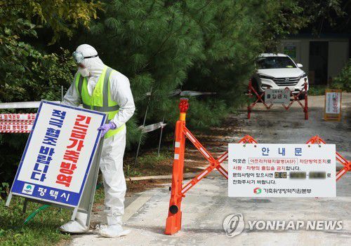 출입 통제되는 아프리카돼지열병 발생 농장 |