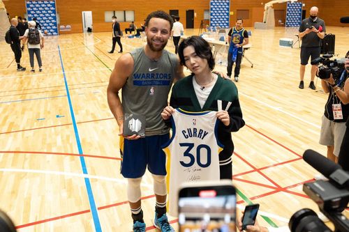 (서울=연합뉴스) 장보인 기자 = 미국프로농구(NBA) 골든스테이트 워리어스의 간판스타 스테픈 커리(34)와 방탄소년단(BTS)의 슈가(29)가 일본에서 만났다.