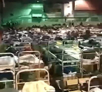 영상을 보면, 체육관으로 보이는 공간에 성인 한 명이 간신히 누울 수 있는 크기의 2층 침대가 빼곡하게 들어서 있다. 침대 공간은 4자리가 한 세트로 구성됐다. 약간의 이동 통로를 제외한 모든 공간에 침대가 다닥다닥 붙어 있어 오징어게임 참가자 숙소를 연상케 했다.