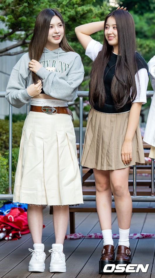 [OSEN=민경훈 기자] 30일 서울 영등포구 KBS 신관에서 KBS 2TV ‘뮤직뱅크’ 리허설이 진행됐다. 그룹 엔믹스(NMIXX)의 배이와 지우가 출근길에 입장하며 포즈를 취하고 있다. 2022.09.30 / rumi@osen.co.kr