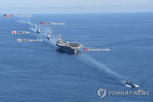 이날 해군에 따르면 미국 핵 추진 항공모함을 포함한 3국 해상 전력이 독도에서 150㎞ 이상 떨어진 동해 공해상에서 대잠전 훈련을 진행하고 있다.