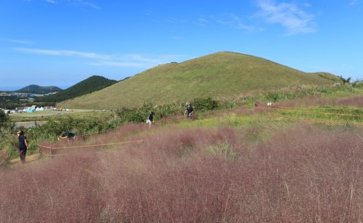 청명한 날씨를 보인 1일 오전 제주시 애월읍 새별오름을 찾은 탐방객들이 가을 정취를 만끽하고 있다. 연합뉴스 |