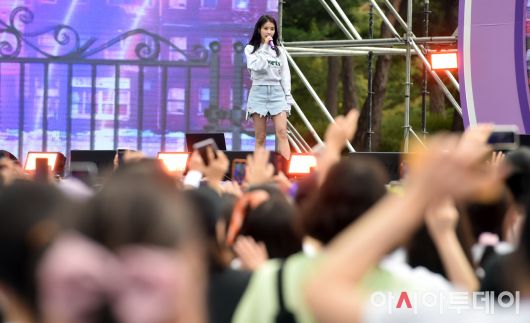 아시아투데이 김현우 기자 = 가수 아이유가 2일 서울 여의도 `뉴발란스 2022 런온 서울 마라톤 우먼스` 대회에서 무대를 선보이고 있다. ⓒ "젊은 파워, 모바일 넘버원 아시아투데이"