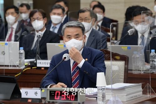 이종섭 국방장관이 4일 용산 국방부 청사에서 열린 국회 국방위 국정감사에서 질의에 답변하고 있다. 국회사진기자단 |
