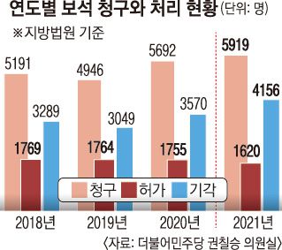 또 형사소송규칙에 따르면 법원은 보석 청구가 있을 때 특별한 사정이 없으면 7일 내 가부를 결정해야 한다. 하지만 처리에 7일 이상 걸린 보석 비중은 2017년 58%에서 지난해 72%로 증가했다. 보석 허가가 잘 되지도 않을 뿐더러 시간도 오래 걸린다는 얘기다.