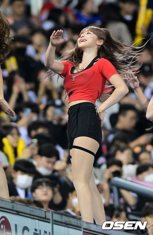 [OSEN=잠실, 지형준 기자] 4일 오후 서울 잠실야구장에서 '2022 신한은행 SOL KBO 리그' LG 트윈스와 KIA 타이거즈의 경기가 열렸다. KIA 치어리더 이다혜가 무대를 선보이고 있다. 2022.10.04 /jpnews@osen.co.kr