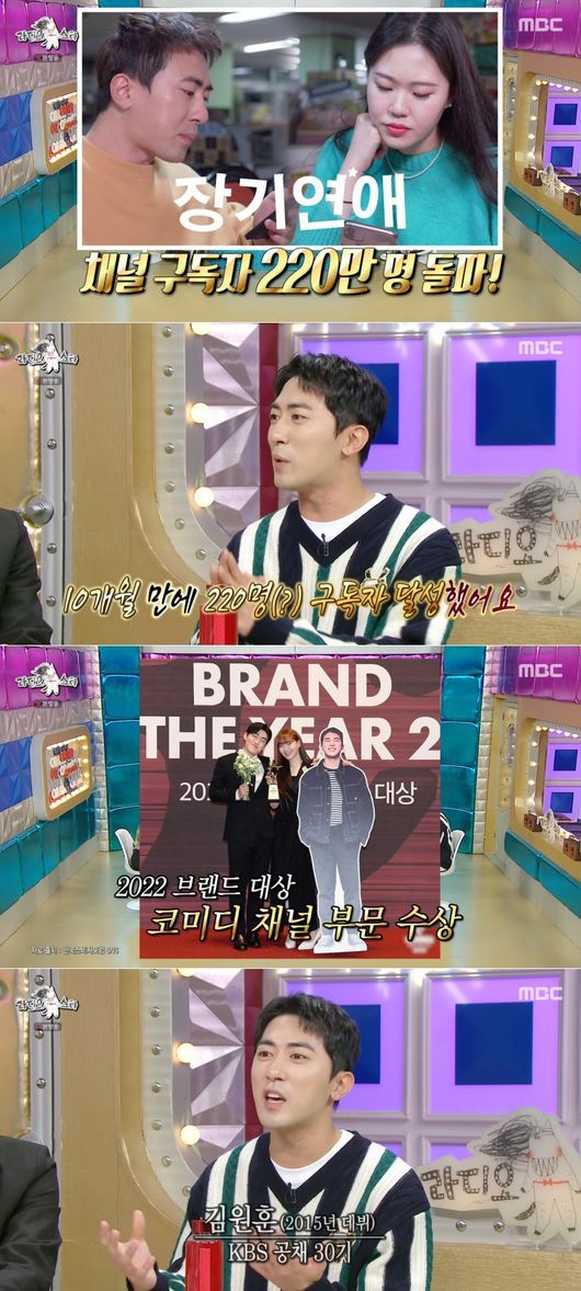 김원훈은 코미디언 조진세, 엄지윤과 함께 유튜브 채널 숏박스에서 '장기연애', '찐남매', '찐형제' 시리즈 등을 선보이며 사랑받는 인물이다. 특히 '장기연애' 시리즈가 매회 수백만 조회수를 기록하며 화제를 모으는 상황. 이에 김원훈은 "'장기연애' 이후로 숏박스가 잘 됐다. 그게 누구 아이디어인지 이야기가 정말 많았다"라며 혀를 내둘렀다.