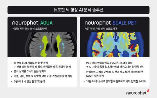 한편, 뉴로핏은 현재 뉴로핏 아쿠아와 뉴로핏 스케일 펫을 고도화해 알츠하이머병 바이오마커를 정량적으로 분석하는 국가 연구 과제 'ATNV 프로젝트'를 활발하게 수행하고 있다. AI 영상 분석 기술로 알츠하이머병 바이오마커인 '아밀로이드(A)-타우(T)-신경퇴행(N)-혈관성 신경병리(V)'를 정량화해 치매 조기 진단 및 예후 예측이 가능한 제품을 개발하는 것이 프로젝트의 연구 목표다