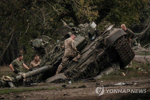 (서울=연합뉴스) 황철환 기자 = 우크라이나 동부전선에서 러시아군을 크게 밀어내는 데 성공한 우크라이나군이 노획한 전차와 야포 등을 즉시 전력화하면서 더욱 기세를 올리고 있다는 언론 보도가 나왔다.