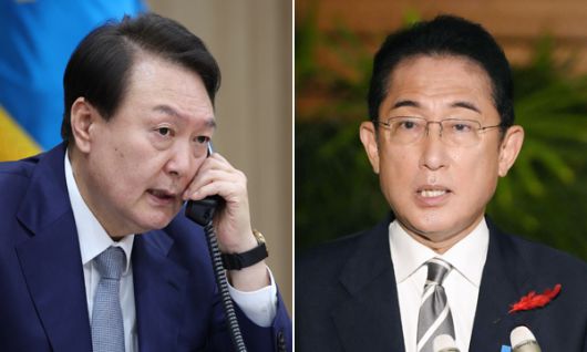 윤석열 대통령이 6일 기시다 후미오 일본 총리와 전화통화를 하고 최근 연이은 북한의 미사일 도발에 대한 양국 협력 및 한·일 관계 개선 방안 등을 논의했다. 이번 정상 간 대화는 지난달 21일(현지시간) 미국 뉴욕에서 진행된 약식회담 이후 약 2주 만으로, 통화는 오후 5시35분부터 6시까지 25분간 진행됐다.