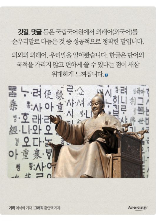의외의 외래어, 우리말을 알아봤습니다. 한글은 단어의 국적을 가리지 않고 편하게 쓸 수 있다는 점이 새삼 위대하게 느껴집니다.