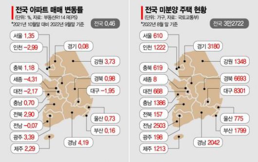 집값 거품 붕괴는 일종의 기저효과를 수반했다. 지난 2020년과 2021년 각각 상승률 1위를 기록했던 세종·인천 집값이 급락한 것이다.