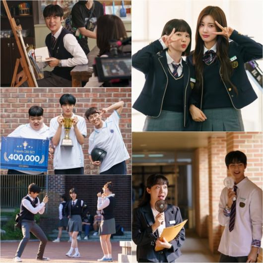 그런가 하면, 각자 휴대용 선풍기를 얼굴 가까이 들고 장난스러운 표정을 짓고 있는 ‘교생선생님’ 소망 역 소주연, 하민의 동생 재민 역의 김민규는 비주얼 극강 '사제지간 포스'를 자랑했다.