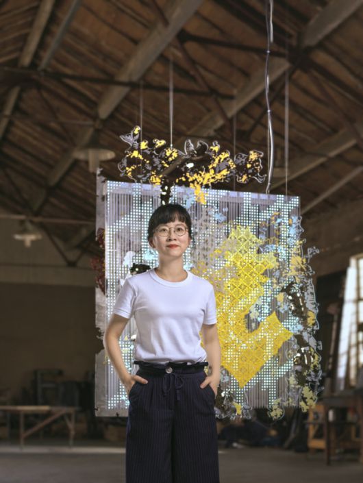 먼저, 비 롱롱의 <박음질된 도시의 피부(STITCHED URBAN SKIN)>는 환희의 여신상 표면 위에 매혹적으로 반사되는 다층적인 도시의 풍경에서 영감을 얻은 작품이다. 작품 속에는 오래된 것과 새로운 것이 하나로 엮여 있는데, 작가는 고전적인 장인 정신과 혁신적인 기술을 통해 서로 다른 장소와 역사를 하나의 캔버스로 옮겨왔다.