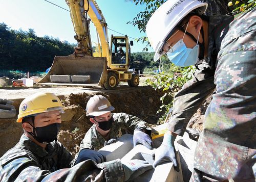 (동해=연합뉴스) 유형재 기자 = 해군 1함대사령부와 5전단 59기동건설전대, 주한미해군사령부는 강원 양양군 기사문 일원에서 '한미 연합 인도적 지원·재난구호'(HA/DR) 훈련을 하고 있다고 12일 밝혔다.