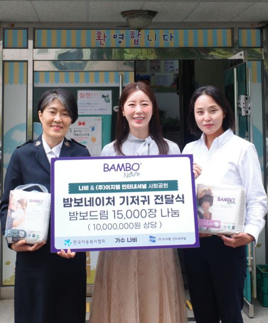 13일 소속사 알앤디컴퍼니에 따르면 나비는 한국아동복지협회에 밤보네이처 기저귀 1만5천 장을 기부했다.