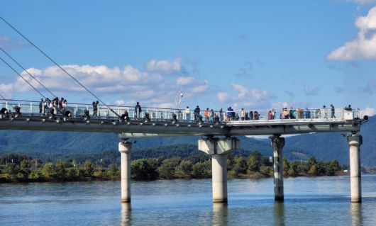 8일 강원 춘천시 소양강스카이워크를 찾은 관광객들이 쾌청한 가을 날씨를 즐기고 있다. (사진=연합뉴스) |