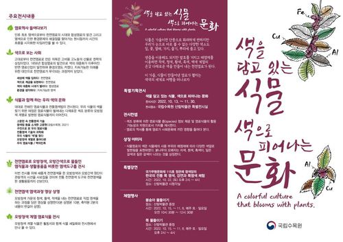 이번 전시회에서는 염료 역사, 색으로 본 사회 계급, 전통 염색법과 염색 도구, 염료식물 등을 선보인다.