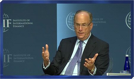 세계 최대 자산운용사인 블랙록의 래리 핑크 회장이 지난 12일(현지시간) 미국 워싱턴DC에서 열린 국제금융협회(IIF) 멤버십 연례 총회에서 발언하고 있다. (사진=IIF, 김정남 특파원) |