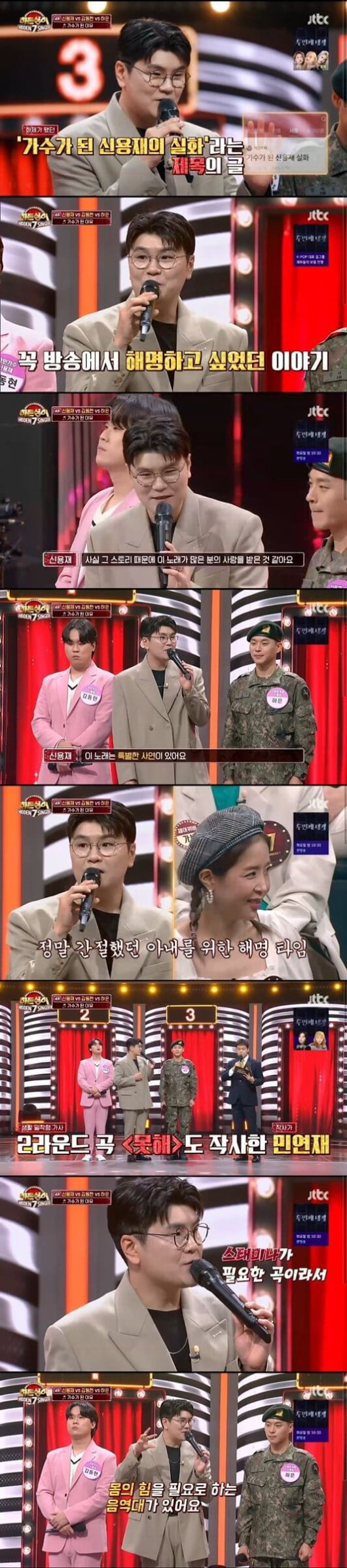 이에 신용재는 "이 노래는 특별한 사연이 있다"며 "저랑 예전부터 작업을 해왔던 '못해' 작사가 민연재씨가 쓴 곡이다", "사실 그 스토리 덕분에 많은 분들의 사랑을 받은 것 같다"고 전했다.