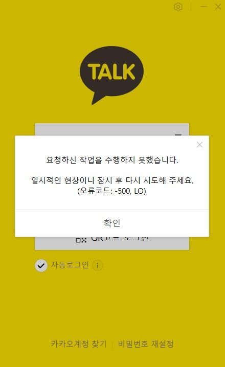 15일 PC 카카오톡 로그인 오류가 발생되고 있다. 사진=PC 카카오톡 화면 갈무리 |