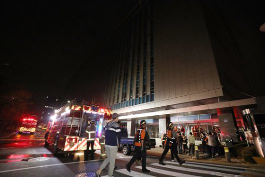 (성남=뉴스1) 박세연 기자 = 15일 오후 경기 성남시 분당구 삼평동 SK판교캠퍼스에서 화재가 발생해 관계자들이 복구작업을 위해 현장으로 들어서고 있다. 이날 오후 카카오 등 데이터 관리 시설이 입주해있는 이 건물 지하에서 불이나면서 카카오톡, 카카오택시 등 일부서비스에 장애가 빚어지고 있다. 2022.10.15/뉴스1 |