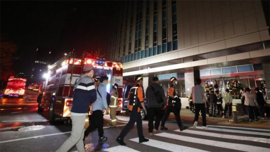 15일 오후 경기 성남시 분당구 SK C&C 판교데이터센터 화재 현장에 출동한 소방대원들. 이 건물 지하 3층 전기실에서 화재가 발생하면서 건물에 있는 서버를 임차해 사용하던 카카오 서비스 상당수가 마비됐고, 많은 국민이 불편을 겪었다. 성남=뉴스1 |