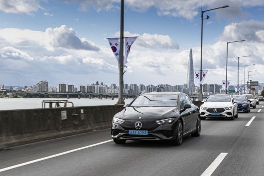 지난 11일 서울 성동구 성수동 '더 뉴 EQE 파빌리온'에서 '더 뉴 EQE' 미디어 시승 행사가 진행됐다. 성수동에서 강원도 원주의 한 카페까지 왕복 약 200㎞를 2인1조로 달려봤다.