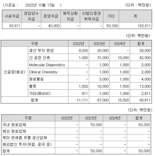 특히 북미시장 수요 및 자사 자체 완제품 수요에 대응하기 위한 '신공장' 구축에 420억원을 투입한다. 회사는 별도의 연구개발(R&D) 시설을 건설해 최첨단 연구시설과 관리동까지 갖춰 회사의 모든 부문을 관리할 수 있도록 한다는 방침이다. 신사업 확대를 위해 개발 중인 혈청화학진단, 분자진단 제품들도 신공장에서 생산할 예정이다.